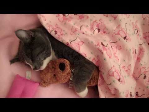This adorable kitty loves to hug his teddy bear to sleep. Look how peacefully he sleeps with his teddy bear as companion. Good night and sweet dreams everyone! ^_^
